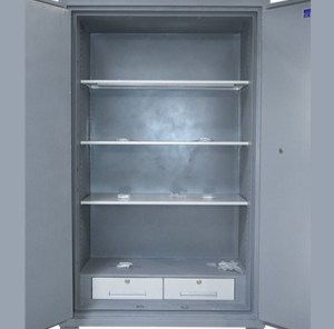 - Fire-resistant and theft-resistant safe with two doors, locks and a mechanical combination dial.